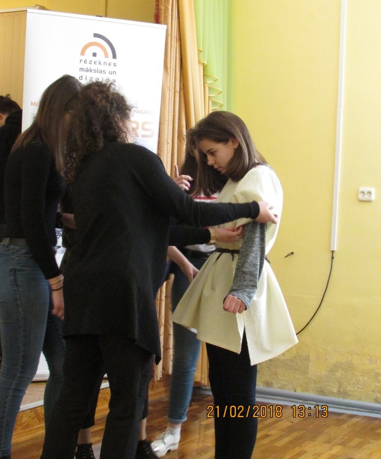 Arī mūsu skolas audzēkņi mācījās savstarpēji sadarboties un komunicēt. Nodarbības laikā tika veidotas interesantas un saliekamas spēļu mantiņas no koka, apgleznotas Lieldienu olas pašu izdomātā dizainā, apgūta prasme kā no viena auduma gabala uzšūt četrus dažādus tērpus īsā laika sprīdī, kurus var uzģērbt uz pasākumu. Katru apģērbu bija jāmāk arī skaisti nodemonstrēt apkārtējiem. To izdarīt nebija tik viegli, jo bija skaisti jānodefilē pa „mēli”. Lai mūsu skolas meitenes varētu interesanti prezentēt savus apģērbus, pirms uzstāšanās, RMDV audzēknes viņām mācīja pareizas stājas pamatus - kur jāskatās, kā pareizi jātur rokas un jāiet, lai tērps, ko demonstrē, ieinteresētu apkārtējos.