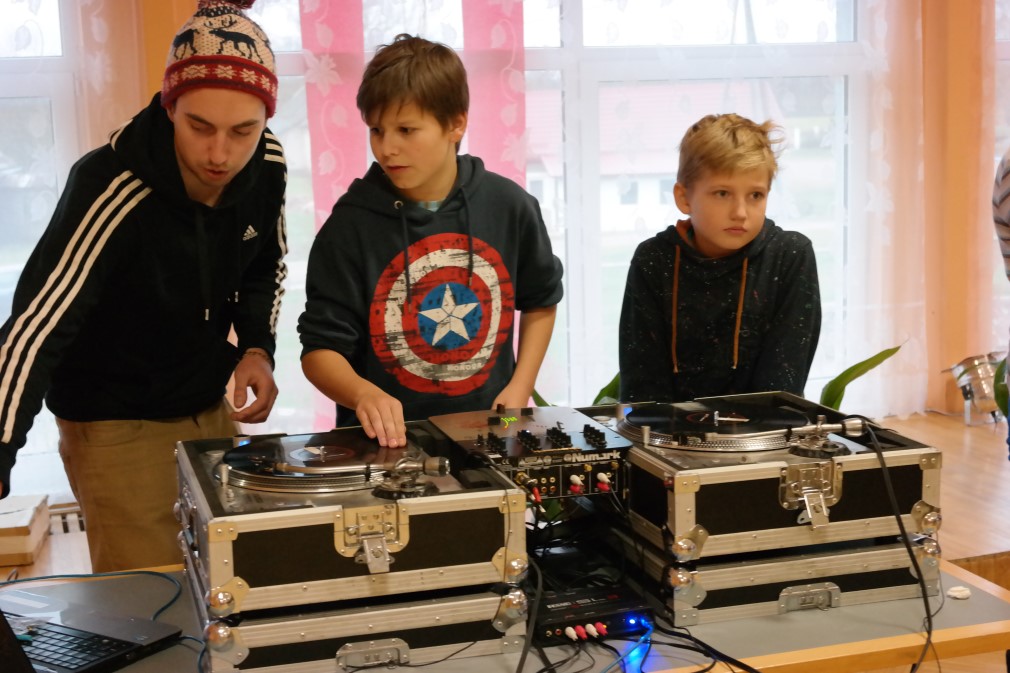 Jāpiebilst, ka pasākuma laikā Bērzgales kultūras namā jauniešiem bija arī iespēja iepazīties ar profesionāla hip-hop/break DJ darbu un amata noslēpumiem. Klātesošajiem bija liela interese par plašu “skrečošanu” un katrs gribēja izmēģināt savas dotības šajā nodarbē un pārliecināties par spējām DJ amatā.