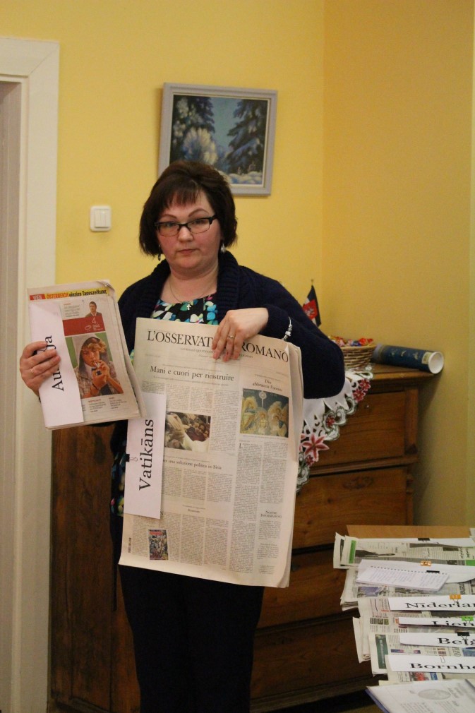 Varēja apskatīt, cik daudzveidīgas ir avīzes: pēc izmēra, krāsu salikuma un šrifta dažādības, avīzes sleju izvietojuma, avīzes laukuma izmantošanas, fotogrāfiju izmēra , papīra kvalitātes un arī pēc mērķauditorijas iedalījuma. Kāda izdoma vajadzīga, lai avīze atšķirtos un tiktu nopirkta! Interesanti, ka Amerikā izdotā avīze ir liela izmēra un sadalīta atsevišķos tematiskos blokos. Iespējams, lai būtu ērtāk – katrs var paņemt to sadaļu, kas interesē un nav jāmet kauliņš, kuram pirmajam tiks, bet katrs var izvēlēties sev vēlamo tematu un paņemt lasīšanai.