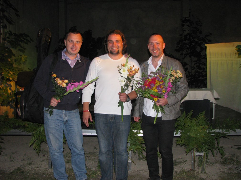 Pasākumā skatītājus uz kopīgu sadziedāšanos aicināja triju draugu muzikantu grupa “Treis plus treis”. Ar savu ģitārspēli un pazīstamām dziesmām muzikanti aizrāva visus, vēlot jaunajam amatierteātrim daudz radošu domu un drosmi izbaudīt savas lomas.