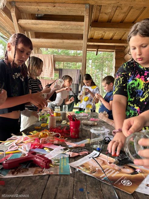 Nometnes laikā notika interesantas radošas darbnīcas un aktivitātes: nozīmīšu veidošanas darbnīca, radošā darbnīca “Vāram ziepes”, pagatavojām burciņu lukturīšus, veidojām gleznas enkaustikas tehnikā, izgatavojām kartiņas no dabas materiāliem, veidojām suvenīrus “Rāznas lāse”, krāsojām mandalas saulrieta krāsās un sagaidījām saulrietu,  radošajā darbnīcā “Katram savs t-krekls!” atjaunojām savus t-kreklus, apzīmējot tos, ļāvāmies gan radošam, gan emocionālam procesam darbā ar dabas materiāliem, veidojot mandalas no čiekuriem, sūnām un Rāznas akmentiņiem, pozitīvu emociju veicināšanai veidojām smilšu figūras Rāznas ezera krastā.