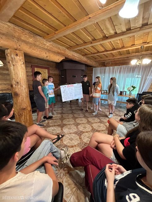 Nometnes pēdējā dienā jaunieši strādāja grupās, kurās veidoja, zīmēja un prezentēja izzinošus plakātus par tēmu: “Raznas ezera bagātības” un “Ežezera skaistums”.