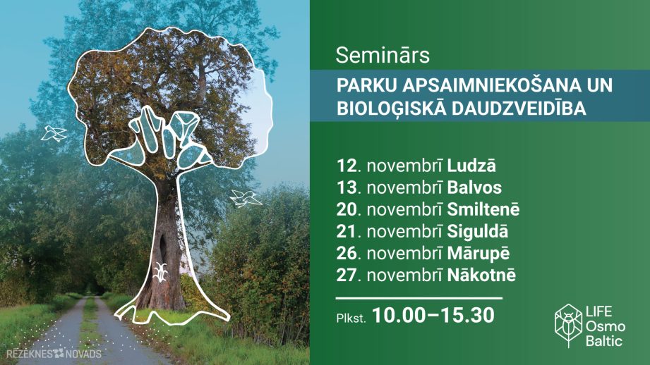 Dabas aizsardzības pārvalde aicina uz projekta "LIFE Osmo Baltic" bezmaksas semināriem "Parku apsaimniekošana un bioloģiskā daudzveidība".