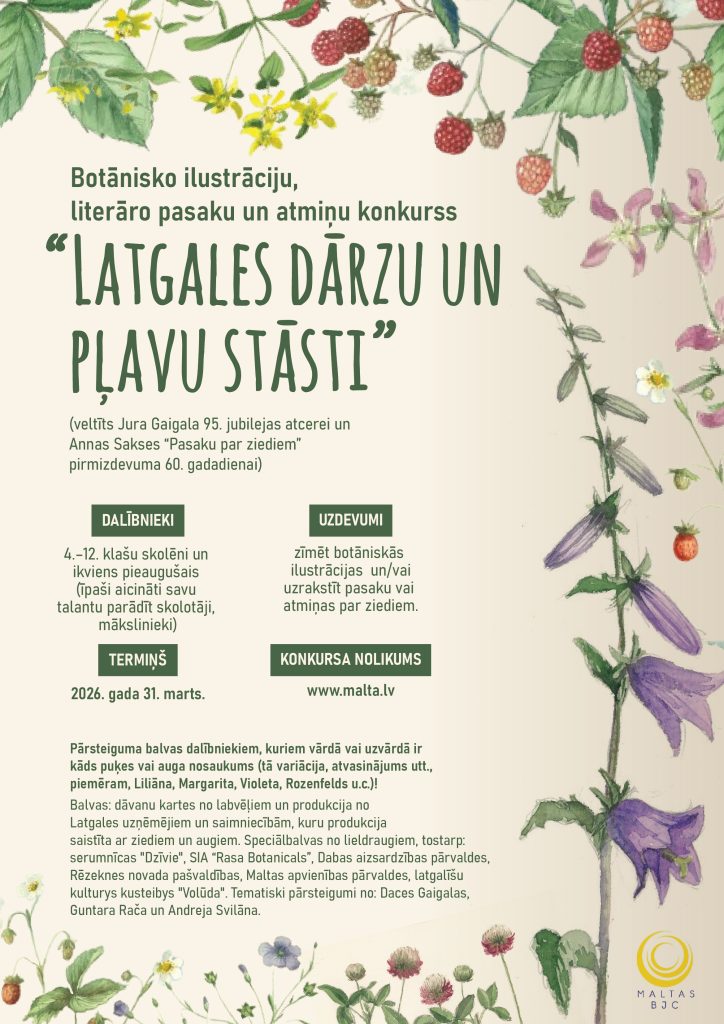 Konkurss norisinās no 31. janvāra līdz 31. martam (ieskaitot) un to organizē Maltas Bērnu un jauniešu centrs. Papildu uzziņas pa tālr. 29263367 vai e-pastā maltas.zinas@inbox.lv (uz to jāsūta arī literārā konkursa darbi). Īpaši tiks novērtēti skolēnu darbi, kas tiks iesniegti kārtīgā rokrakstā, arī pieaugušie var darbu iesniegt rokrakstā. Botāniskās ilustrācijas iesniedzamas A4 vai A3 formātā, sūtot uz adresi Parka iela 20, Malta, Rēzeknes novads, LV-4630 (norāde “Maltas BJC konkursam”) vai sazinoties ar organizatoriem.
