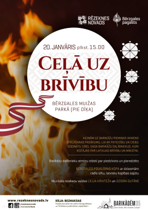 Aicinām uz Barikāžu piemiņas akmens atklāšanas pasākumu Bērzgales muižas parkā (pie dīķa). Pasākuma laikā ar pateicību un cieņu godināsim tos, kuri 1991. gada Barikāžu laikā stāvēja par mūsu valsts brīvību un nākotni. Uzrunu teiks Nautrēnu apvienības vadītājs, barikāžu laika dalībnieks Arvīds Dunskis, akcentējot Barikāžu nozīmi mūsu tautas liktenī un piemiņas vietas izveidi Bērzgalē. Svinīgā gaisotnē savas atmiņas un piedzīvoto atklās barikāžu dalībnieki — cilvēki, kuri toreiz bija gatavi riskēt ar visu, lai sargātu to, kas mums šodien ir pašsaprotams. Muzikālo gaisotni veidos Lilija Krivteža un Dzidra Gutāne, savukārt Bērzgales folkloras kopa ar savām dziesmām ienesīs pasākumā siltumu, latvisku skanējumu un kopības sajūtu. Pasākuma noslēgumā pie ugunskura vienosimies kopīgās dziesmās un baudīsim siltu tēju.