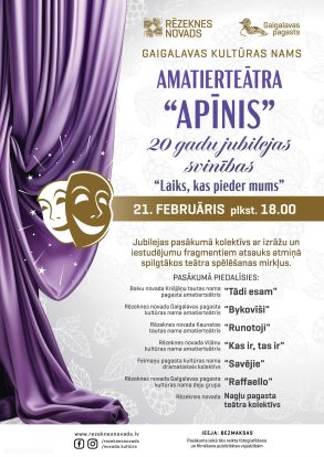 Laipni aicināti uz Gaigalavas pagasta kultūras nama amatierteātra “Apīnis” 20 darbības gadu jubilejas pasākumu!