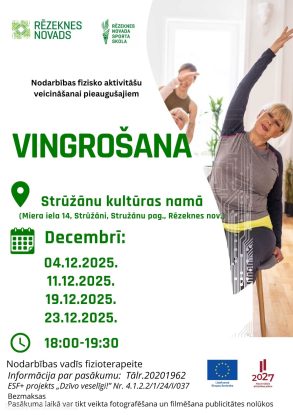 Aicinām piedalīties vingrošanas nodarbībā ESF+ projekta “Dzīvo veselīgi” ietvaros!