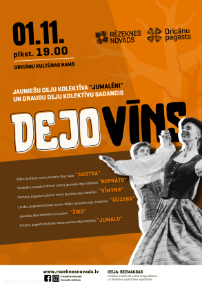 Jauniešu deju kolektīva “Jumalēni” draugu kolektīvu sadancis Halovīniskās noskaņās. Jauniešu deju kolektīvi piedāvās savas vismīļakās dejas. Pasākumā piedalās Viļānu kultūras nama jauniešu deju kopa “Austra”, Varakļānu novada kultūras centra jauniešu deju kolektīvs “Neprāts”, Feimaņu pagasta kultūras nama jauniešu deju kolektīvs “Vīmyns”, Lendžu pagasta kultūras nama vidējās paaudzes deju kolektīvs “Ūdzeņa”, Jauniešu deju kolektīvs “Žiks” no Ludzas, Dricānu pagasta kultūras nama senioru deju kolektīvs “Jumalo”.