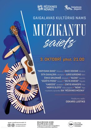 Aicinām apmeklēt festivālu “Muzikantu saiets”, kurā skanēs dažādu žanru mūzika. Festivālā piedalīsies muzikanti un grupas, kā Gita Dukaļska (Jēkabpils), Juris Ķirsons (Balvi), Ēriks Gruzniņš (Jēkabpils), Zintis Krakops (Tilža), Dace Deksne (Rēzekne), “Auzas” (Kaunata), “Kabūzis” (Varakļāni), “MARYSANA band” (Rēzekne), “Gāzēts piens” (Iecava), “Morys Olūts” (Višķu pagasts), “Zelta kniede” (Sigulda), “Nova” (Rīga) un muzikantu apvienība – SIA “Rēzeknes mūzika”.