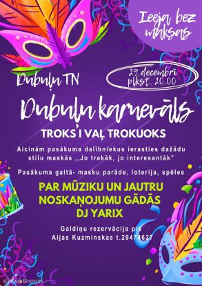Dubuļu karnevāls “Troks i vaļ trokuoks!”. Aicinām pasākuma dalībniekus ierasties dažādu stilu maskās “Jo trakāk, jo interesantāk”.