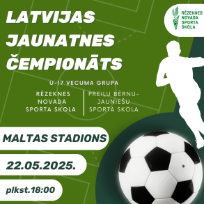 Aicinām nākt un atbalstīt Rēzeknes novada Sporta skolas audzēkņus Latvijas Jaunatnes čempionātā (U-17 vecuma grupā) Maltas stadionā 22. maijā plkst. 18.00.