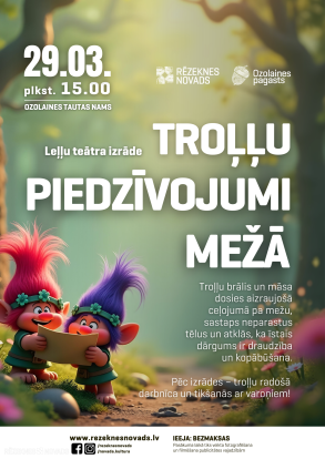Aicinām apmeklēt leļļu teātra izrādi “Troļļu piedzīvojumi mežā” Ozolaines pagasta tautas namā!