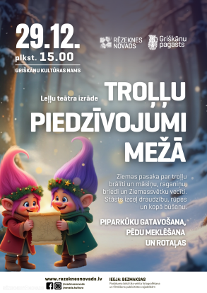 Aicinām bērnus un vecākus apmeklēt aizraujošu leļļu teātra izrādi “Troļļu piedzīvojumi mežā”.