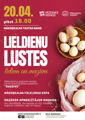 Lieldienas ir pavasara saulgrieži, kad upes sāk straujāk čalot, kad vizbuļu ziedi piepilda meža ielokus, kad putnu treļi iekandina katru sētu. Mākoņkalna pagasta tautas nams aicina ikvienu uz pasākumu “Lieldienu lustes lieliem un maziem”.