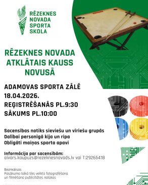 18. aprīlī Adamovas sporta zālē notiks tradicionālais Rēzeknes novada atklātais kauss novusā.