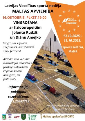 Latvijas Veselības sporta nedēļas ietvaros Maltas apvienībā, 16. oktobrī plkst. 19.00 aicinām visa vecuma iedzīvotājus iesaistīties fiziskajās aktivitātēs – vingrosim, elposim, stiepsimies, izkustināsim savu ķermeni!