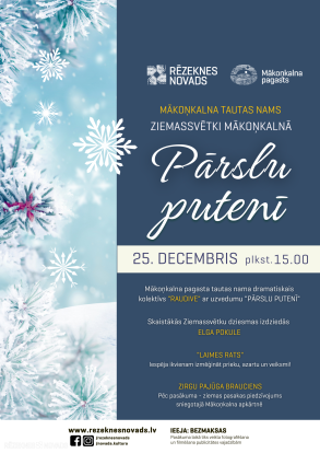 Gada siltākie un sirsnīgākie svētki tuvojas, un Mākoņkalna pagasta tautas nams aicina uz Ziemassvētku pasākumu, kurā valdīs gaišas emocijas, mūzika un svētku prieks! Pasākumu atklās Mākoņkalna pagasta tautas nama dramatiskais kolektīvs “Raudive”, kas skatītājiem piedāvās īpašu Ziemassvētku uzvedumu “Pārslu putenī”.