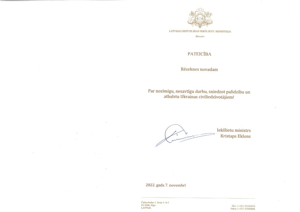 The Ministry of Interior issued a thank-you article to the municipality of Rezekne