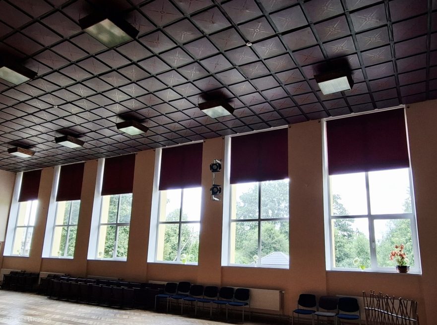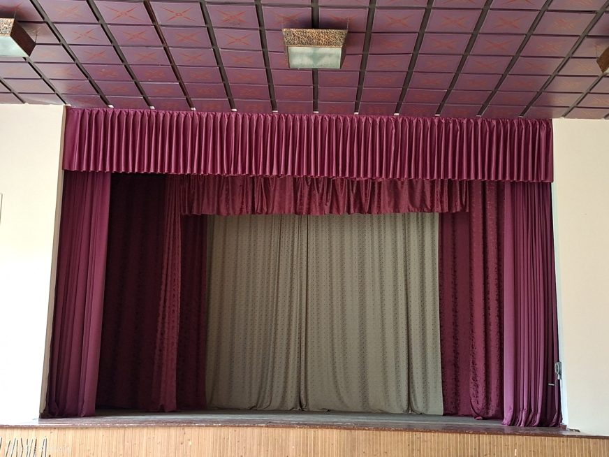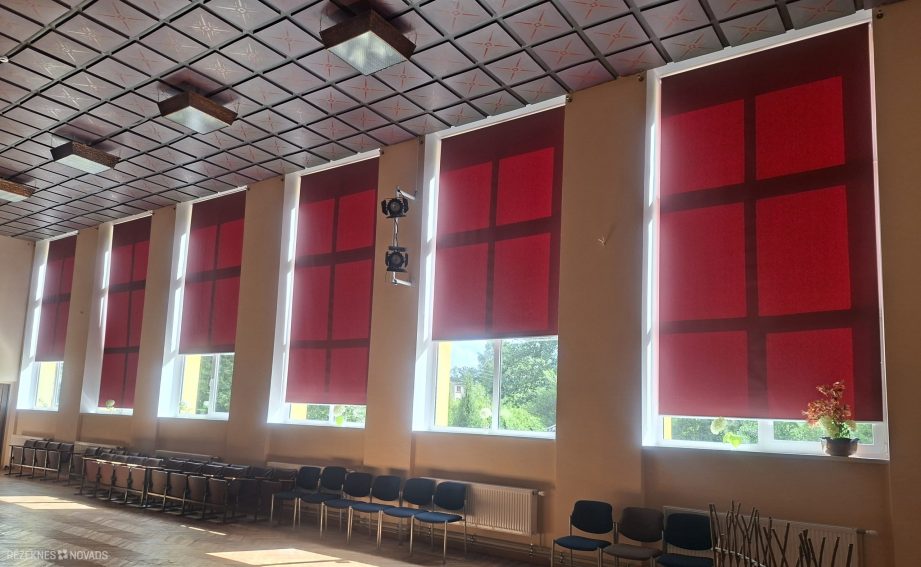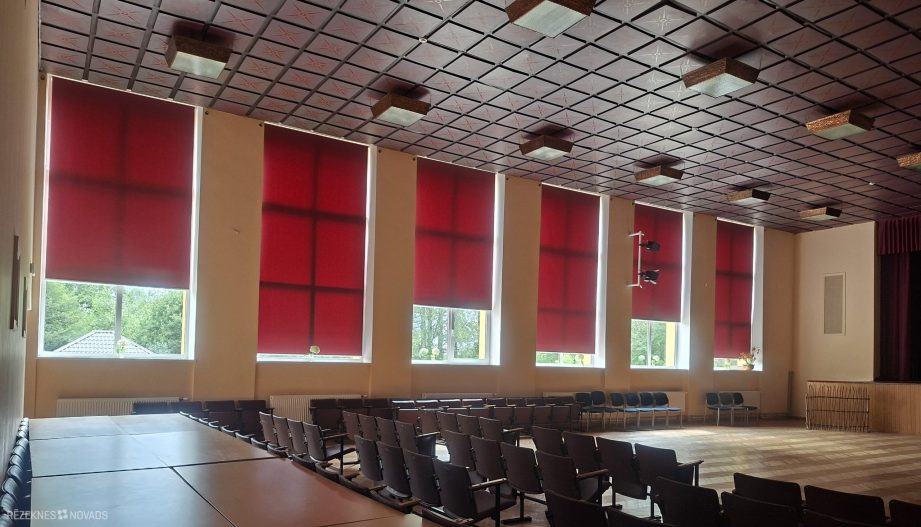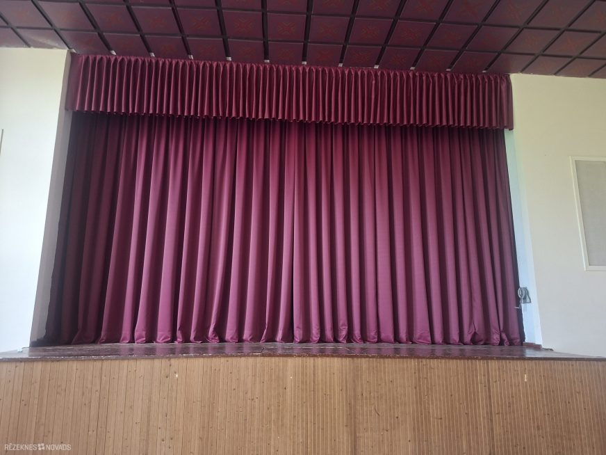 Iegādāts jauns skatuves priekškars un sešas zāles logu žalūzijas.