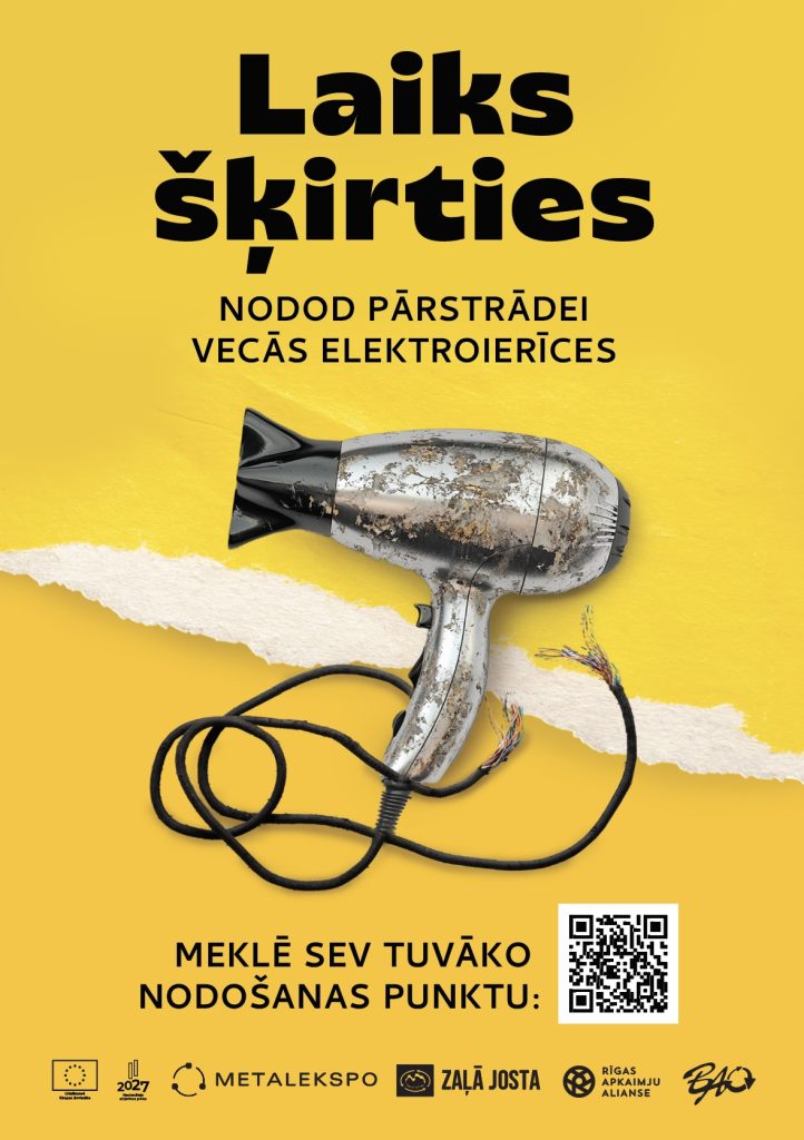 Elektrotehnikas nodošanas kampaņu “Laiks šķirties” organizē SIA “Metalekspo” sadarbībā ar SIA “Zaļā josta”, Rīgas Apkaimju alianse, AS “BAO” un Āgenskalna tirgu.
