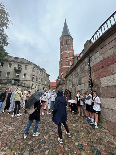 Pirmajā ekskursijas dienā devāmies uz otro lielāko Lietuvas pilsētu – Kauņu, kura ir pazīstama ar savu unikālo kultūras un dabas ainavu, kā arī ir Lietuvas basketbola galvaspilsēta. Kauņā pastaigājamies pa vecpilsētas vēsturisko centru, senajām mazajām ieliņām, apskatījām ēkas un skaistas baznīcas, apmeklējām Kauņas pili, iemācījāmies atšķirt gotikas un renesanses stilus. Kauņā apmeklējām Zooloģisko dārzu, kur apskatījām dažādus dzīvniekus, uzņēmām skaistas bildes un jauki pavadījām laiku.