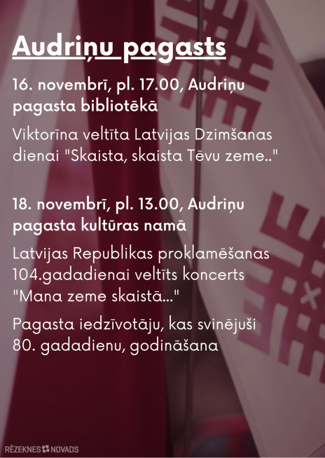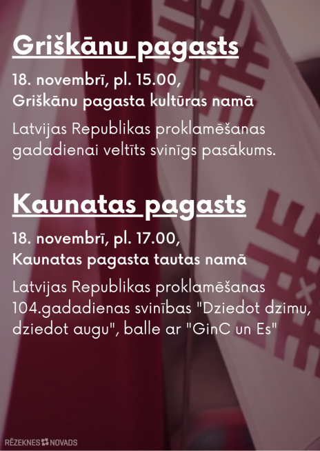 In the festival week, especially on the day of proclamation of the Republic of Latvia on 18 November, every citizen is invited to attend the events of the 104 th anniversary of the Republic of Latvia.