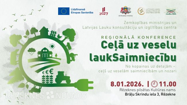 Kas īsti ir veselīga saimniecība un kāds ir Latvijas Lauksaimniecības izaugsmes plāns 2026.–2036. gadam? Par šiem un saistītiem jautājumiem 8. janvārī ZM un LLKC reģionālajā konferencē "Ceļā uz veselu lauksaimniecību" Rēzeknē spriedīs Latvijas lauksaimniecības nozares pārstāvji un eksperti.