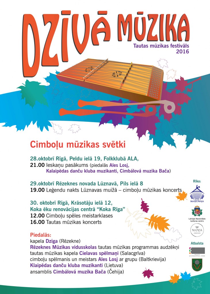Svētkos piedalīsies cimboļu spēlmanis un meistars Ales Losj ar grupu (Baltkrievija), Klaipēdas danču kluba muzikanti (Lietuva), ansamblis “Cimbalova muzika Bača” (Čehija), kapela “Dziga” (Rēzekne), Rēzeknes mūzikas vidusskolas tautas mūzikas programmas audzēkņi un tautas mūzikas kapelas “Cielava” spēlmaņi (Salacgrīva).