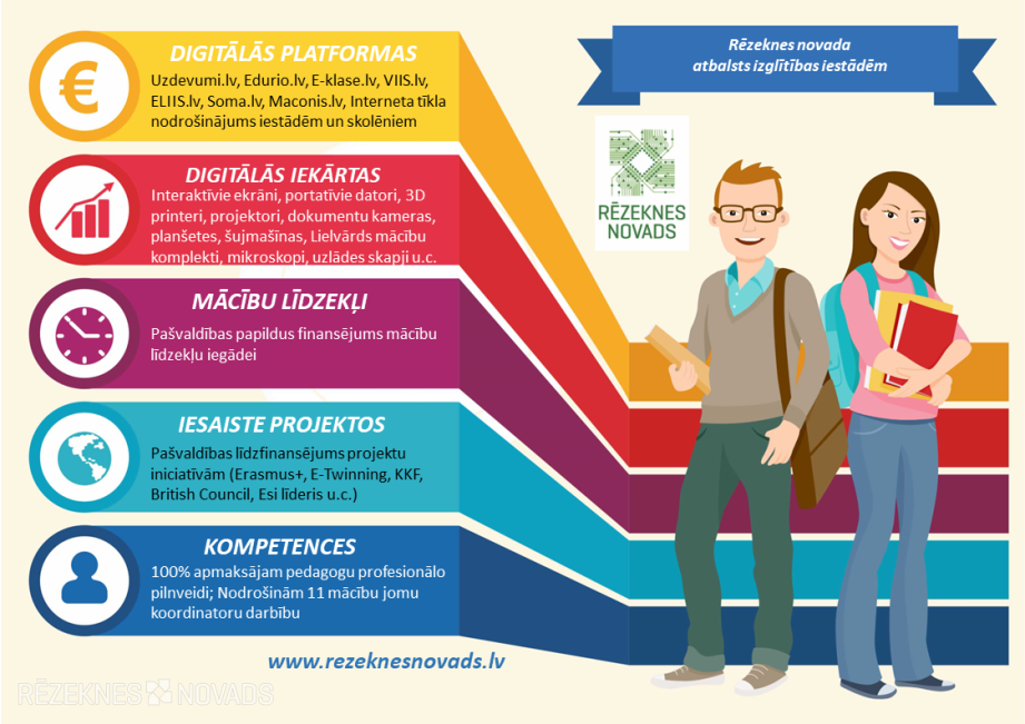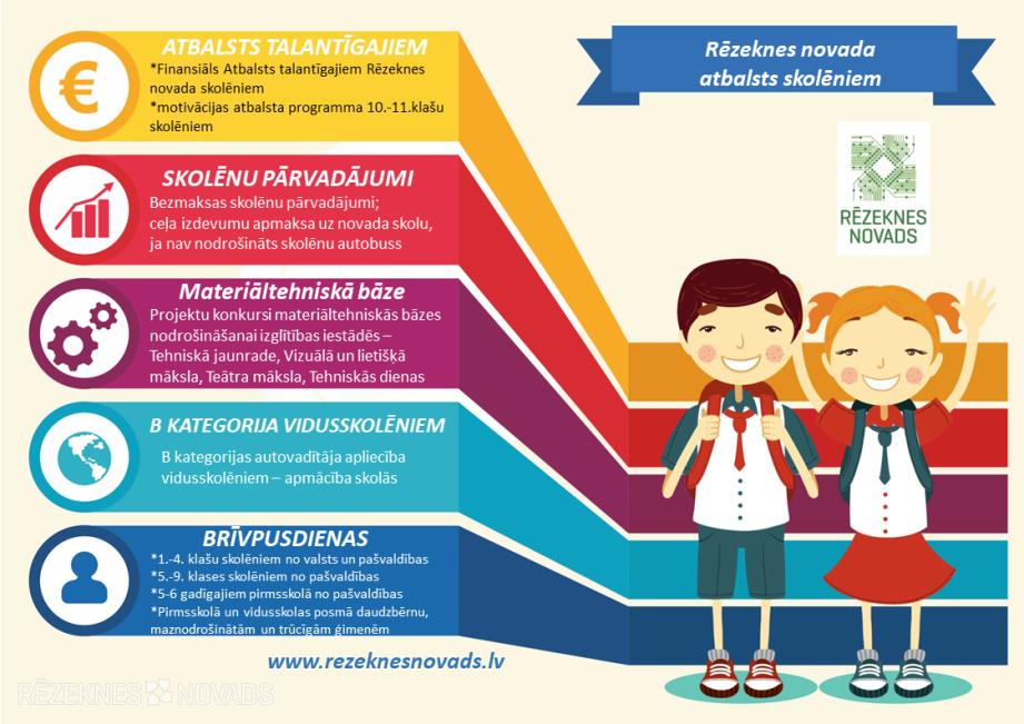 Rēzeknes novada pašvaldības atbalsts Rēzeknes novada skolēniem un izglītības iestādēm ir atspoguļots pievienotajās infografikās.