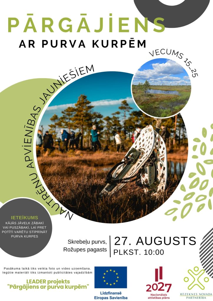 Nautrēnu apvienībā ES ELFLA intervences "Darbību īstenošana saskaņā ar sabiedrības virzītas vietējās attīstības stratēģiju, tostarp sadarbības aktivitātes un to sagatavošana" (LA 19) aktivitātē "Kopienu spēcinošas un vietas attīstību sekmējošas iniciatīvas" atbalstītā projekta “Aktīvai jaunatnei Nautrēnu apvienībā” ietvaros 27. augustā Nautrēnu apvienības pagastu jaunieši dosies uz Skrebeļu purvu Rozūpes pagastā, lai izzinātu tā bagātības un noslēpumus.