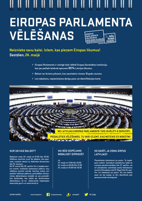Neiznieko savu balsi! Piedalies Eiropas Parlamenta vēlēšanās un izlem, kas turpmāk pieņems Eiropas likumus!