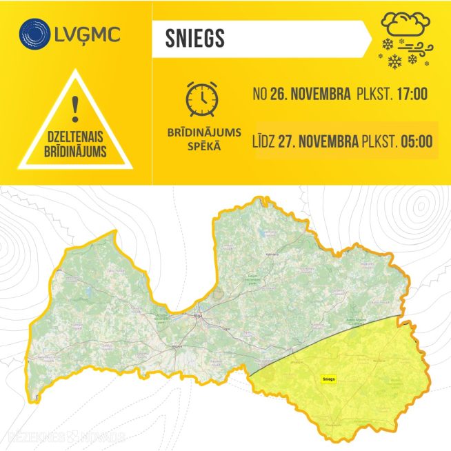 Brīdinājums spēkā no plkst. 23:00 26.11.2025. līdz plkst. 10:00 27.11.2025.