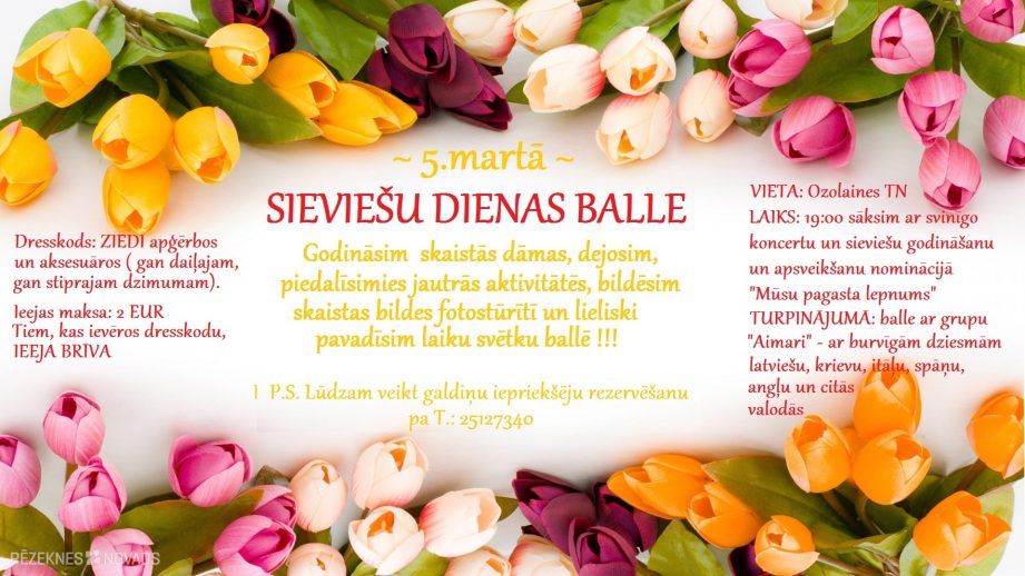 5.martā Ozolaines Tautas namā pulcēsimies uz Sieviešu dienas svinībām! Vakara pirmajā daļā būs svētku koncerts, tā ietvaros sumināsim Ozolaines pagasta sievietes, kuras tika pieteiktas nominācijai "Ozolaines pagasta lepnums"!