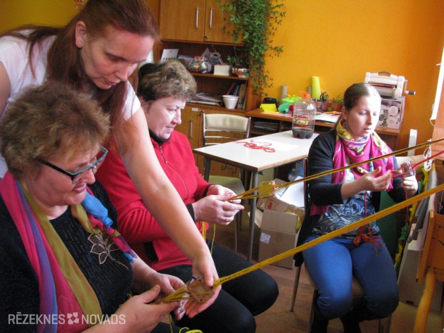 Arī Bērzgalē 3. aprīlī rokdarbu darināšanas interesentus aicināja Tautas lietišķās mākslas studijas “Dzīpariņš” vadītāja Anita Kairiša. Šoreiz iespēju apgūt jostu – celaiņu aušanas pamatus rokarbnieces bija ieradušās no Bērzgales, Rēzeknes, Ludzas un Gaigalavas.