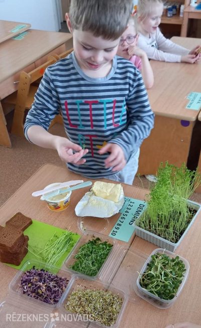 Gaumes atšķīrās: vieni deva priekšroku rukolas dīgstiem, bet citiem vislabāk garšoja saulespuķu zaļumi. Pašu gatavotā sviestmaize nodarbības noslēgumā bija kā emocionāls apbalvojums par ieguldīto darbu, radot sajūtu: “Es darīju, es radīju, un tas ir labi!”