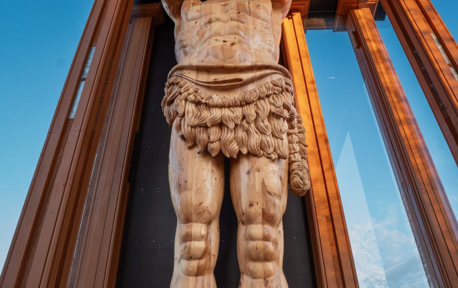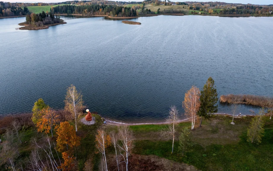 Ints says: “The legend says that on dark and rainy nights, the sisters had to take a piece of the Moon in their hands, climb to the top of the highest mountain that towers over the lake, and hold the bright sliver of the moon above their heads so that it would shine brightly and their brother would find his way back.” The shape and design of the sculptures harmonize with the surrounding environment. Both sculptures are made of pine and spruce, making the surroundings of Adamova Lake more interesting.