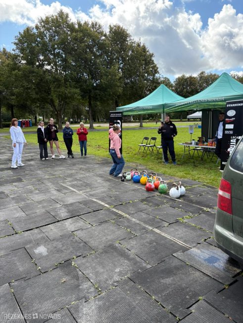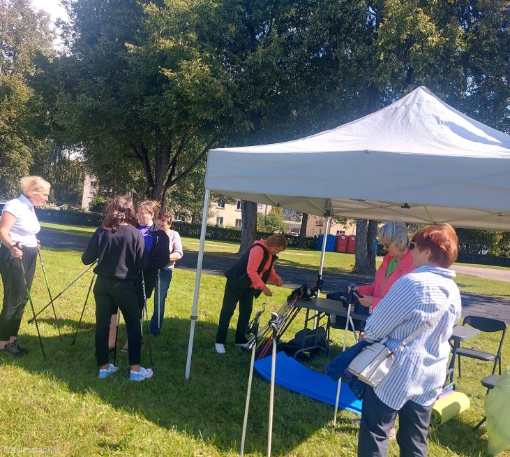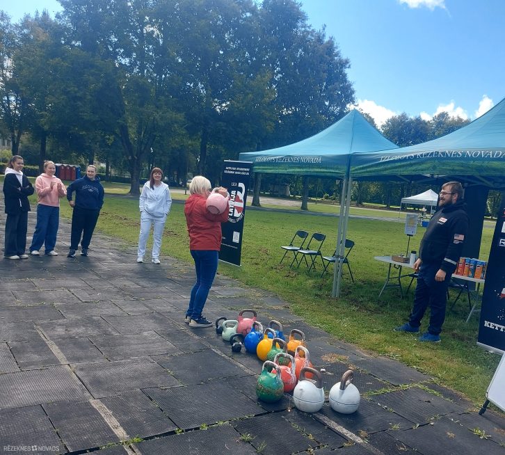 - Paraugdemonstrējumu zonā notika deju un mākslas priekšnesumi, līdzsvara vingrinājumi, vingrošana ar svariem un nūjošanas nodarbība. Vingrinājumi līdzsvara attīstīšanai tika veikti uz dažādām virsmām un līdzsvara platformām, kas palīdzēja stiprināt kāju, kodola un stabilizējošos muskuļus. Nodarbības bija piemērotas dažāda vecuma grupām un veicināja koordināciju, stāju un kustību drošību ikdienā. Aktivitāti īstenoja sporta pedagoģe Lāsma Malta. Dalībnieki ar lielu aizrautību piedalījās svarcelšanas sacensībās, apguva pareizu svaru bumbas celšanas tehniku. Aktivitātes nodrošināšanā piedalījās Svaru bumbas asociācijas valdes priekšsēdētājs Vladislavs Voitehovičs un pasaules čempions svaru bumbas celšanā Māris Rubulis. Lielu interesi radīja vizuāli plastiskās dejas paraugdemonstrējumi deju pedagoģes Vigitas Stramkales vadībā, jo deja apvieno sportisku fizisko aktivitāti ar radošu atpūtu, ļaujot gan trenēt ķermeni, gan izbaudīt kustības prieku. Ar nūjošana kā veselību stiprinošu fizisko aktivitāti, kurā ar speciālām nūjām tiek iesaistīti gan kāju, gan roku, gan muguras muskuļi interesentus iepazīstināja nūjošanas trenere Valentīna Svilāne Dūda. Speciāliste paskaidroja kā nūjošana uzlabo izturību, stāju, sirds un asinsvadu veselību, vienlaikus parādot ka tā ir piemērota dažādu vecumu un sagatavotības līmeņu cilvēkiem.