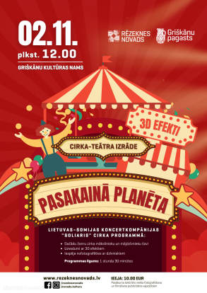 Aicinām 02. novembrī plkst. 12.00 apmeklēt interesantu muzikālu cirka izrādi Lietuvas-Somijas koncertkompānijas “SOLIARIS”.