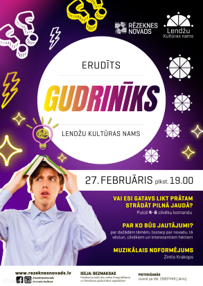 Aicinām piedalīties erudīcijas pasākumā “Gudrinīks” – aizraujošā zināšanu un atjautības pārbaudē, kurā prāts strādā pilnā jaudā!