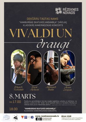 Aicinām 8. martā uz klasiskās kamermūzikas koncertu, kurā uzstāsies Hamburgas skatuves ansamblis no Vācijas ar koncertprogrammu “Vivaldi un draugi”.