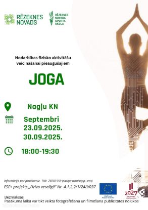 Aicinām pievienoties jogas nodarbībā Nagļu pagasta kultūras namā, plkst. 18.00–19.30.