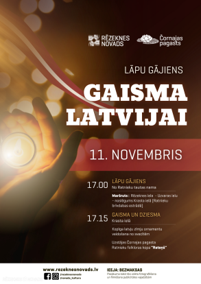 Aicinām 11. novembrī plkst. 17.00 pulcēties pie Čornajas pagasta Ratnieku tautas nama, lai kopīgi tiktu nesta gaisma Latvijai, ar iedegtām liesmām izejot pa ciemata ielām, kā apliecinājumu par piederību, vienotību, brīvību. Noslēgumā, Ratnieku brīvdabas estrādē, kopīgi būs iespēja izveidot latvju zīmju svecīšu ornamentus, klausoties un dziedot dziesmas kopā ar Čornajas pagasta Ratnieku folkloras kopu “Rateņš”.