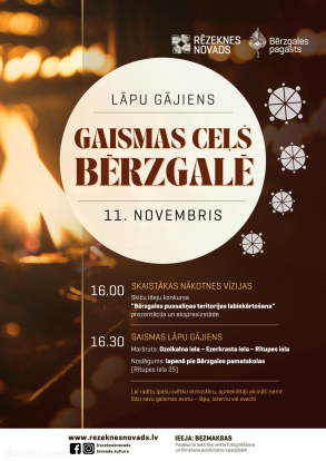 Plkst. 16.30 pēc ideju autoru godināšanas visi sanākušie aicināti pievienoties izzinošam lāpu gājienam pa Bērzgales ielām: Ozolkalna iela-Ezerkrasta iela-Rītupes iela. Gājiena laikā simboliski tiks iedegta gaisma, kas vieno, iedvesmo un atgādina par kopīgo spēku, izzinot sava ciema vēsturi. Lāpu gājiens noslēgsies lapenē pie Bērzgales pamatskolas (Rītupes iela 25, Bērzgale).