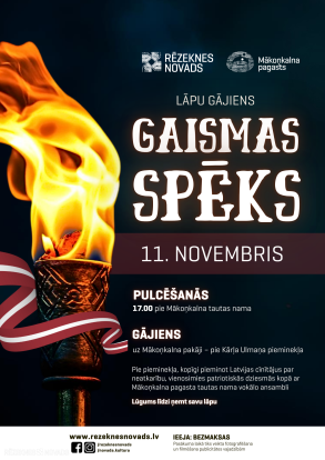 Aicinām piedalīties lāpu gājienā “Gaismas spēks”, kas notiks Mākoņkalnā. Pulcēšanās plkst. 17.00 pie Mākoņkalna pagasta tautas nama, no kurienes visi varēs vienoties kopīgā gājienā uz Mākoņkalna pakāji, pie Kārļa Ulmaņa pieminekļa. Katrs dalībnieks aicināts paņemt līdzi lapu, ko būs iespēja atstāt kā simbolisku zīmi gaismas uzvarai pār tumsu, ticībai, cerībai un spēkam, kas vieno tautu.