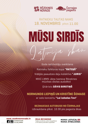 Ratnieku tautas namā norisnāsies svinīgs pasākums, kas veltīts Latvijas Republikas proklamēšanas 106. gadadienai.