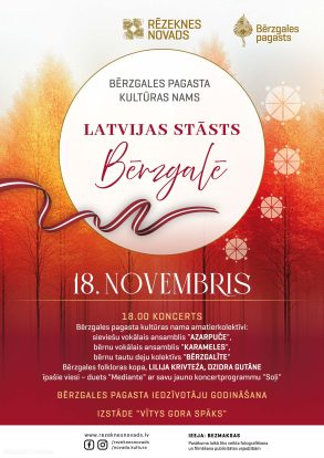 Bērzgales pagasta kultūras namā notiks svētku koncerts veltīts Latvijas Republikas proklamēšanas gadadienai, kurā uzstāsies Lilija Krivteža, Bērzgales pagasta kultūras nama amatierkolektīvi – sieviešu vokālais ansamblis “Azarpuče”, bērnu vokālais ansamblis “Karameles”, bērnu tautu deju kolektīvs “Bērzgalīte” un Bērzgales folkloras kopa. Koncerta noslēgumā skatītājus priecēs īpašie viesi – duets “Mediante” ar savu jauno koncertprogrammu “Soļi”, kas simbolizē iekšējo un ārējo kustību – virzību, pārmaiņas un izaugsmi. Programmas muzikālā valoda smalki balansē starp kamermūzikas izteiksmīgumu un populārās mūzikas vienkāršību un skaidrību.
