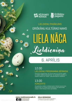 Lieldienas ir laiks, kad pavasaris atdzīvina dabu, radot svētku noskaņu, suminot saules ceļu kalnā, veicinot dabas auglību un motivējot cilvēkus darbīgam un radošam cēlienam. Griškānu pagasta kultūras nams aicina ikvienu uz pasākumu “Liela nāca Lieldieniņa”.