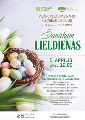 Lieldienās aicinām lielus un mazus sanākt kopā, lai ar dziesmu, deju un senu paražu spēku modinātu pavasari. Svinību noskaņu radīs Viļānu kultūras nama bērnu un jauniešu folkloras draugu kopa “Biteitis”, Viļānu kultūras nama pirmsskolas vecuma bērnu deju kolektīvs, Viļānu kultūras nama folkloras ansamblis “Viļōnīši”, Viļānu kultūras nama kapela “Bumburneicys”.