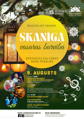 Aicinām uz muzikālo vakaru Bērzgales pagasta kultūras nama pagalmā – vasaras vakaru zem atklātas debess, kur saplūst mūzika, māksla un dejas!