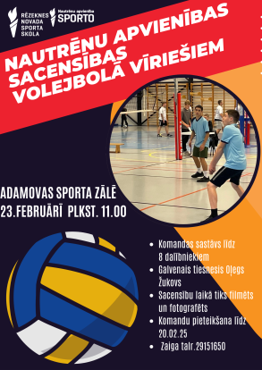 Aicinām piedalīties Nautrēnu apvienības sacensībās volejbolā vīriešiem, kuras notiks 23. februārī plkst. 11.00 Adamovas sporta zālē.